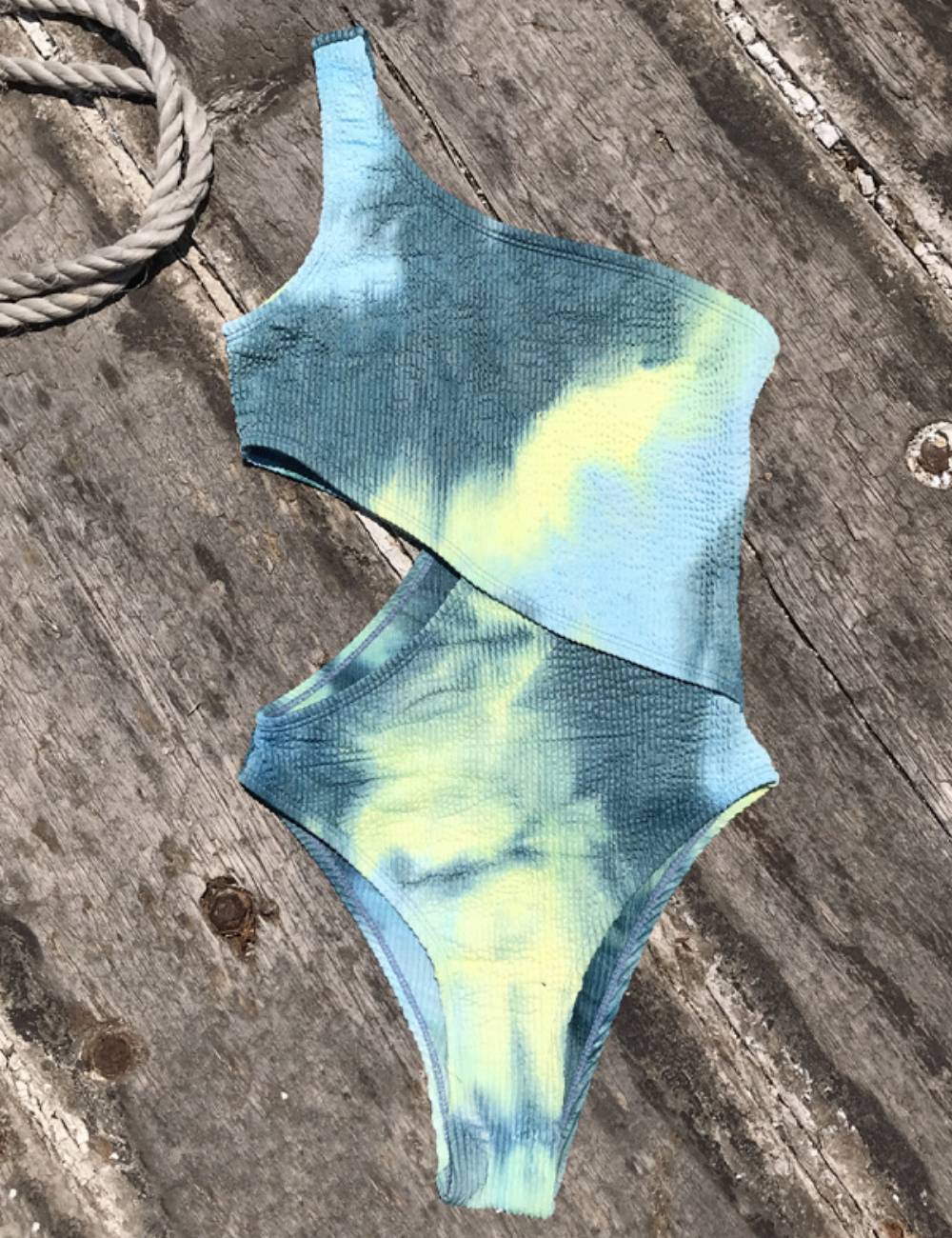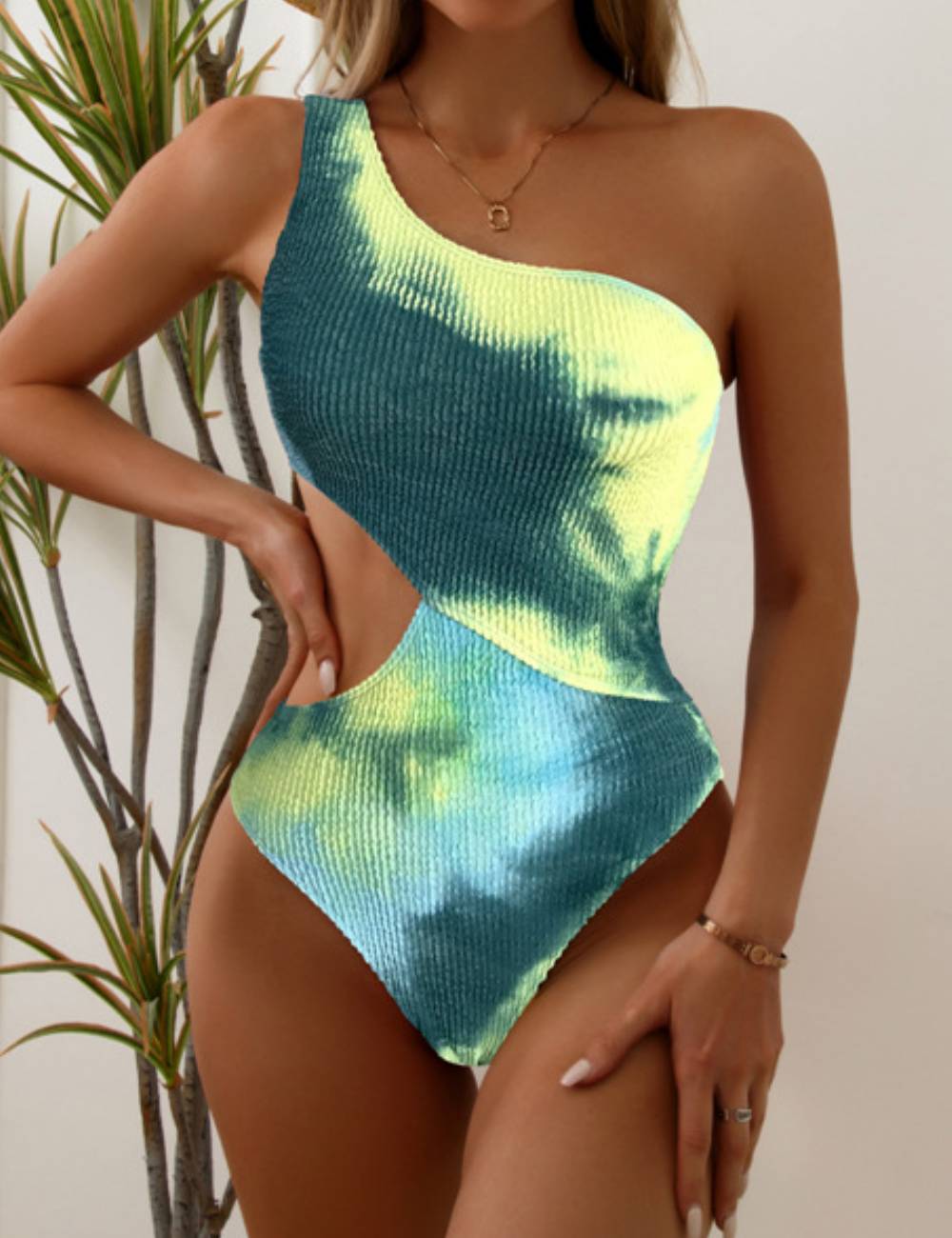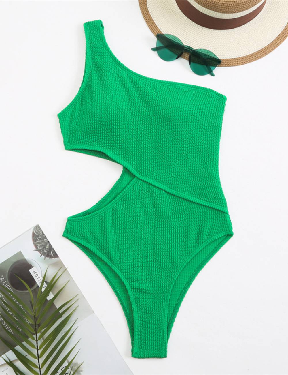 Wrinkle One Shoulder One Piece Swimwear SKSW40090
